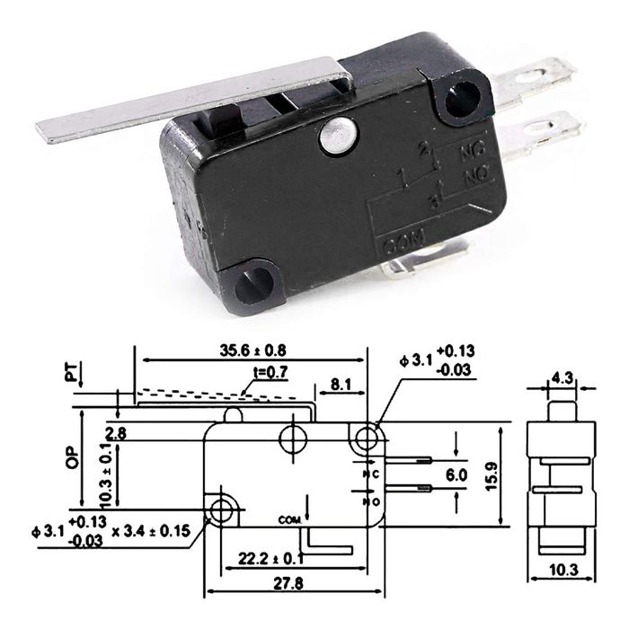 Este microswitch es ideal para aplicaciones donde se requiere un interruptor confiable y duradero.