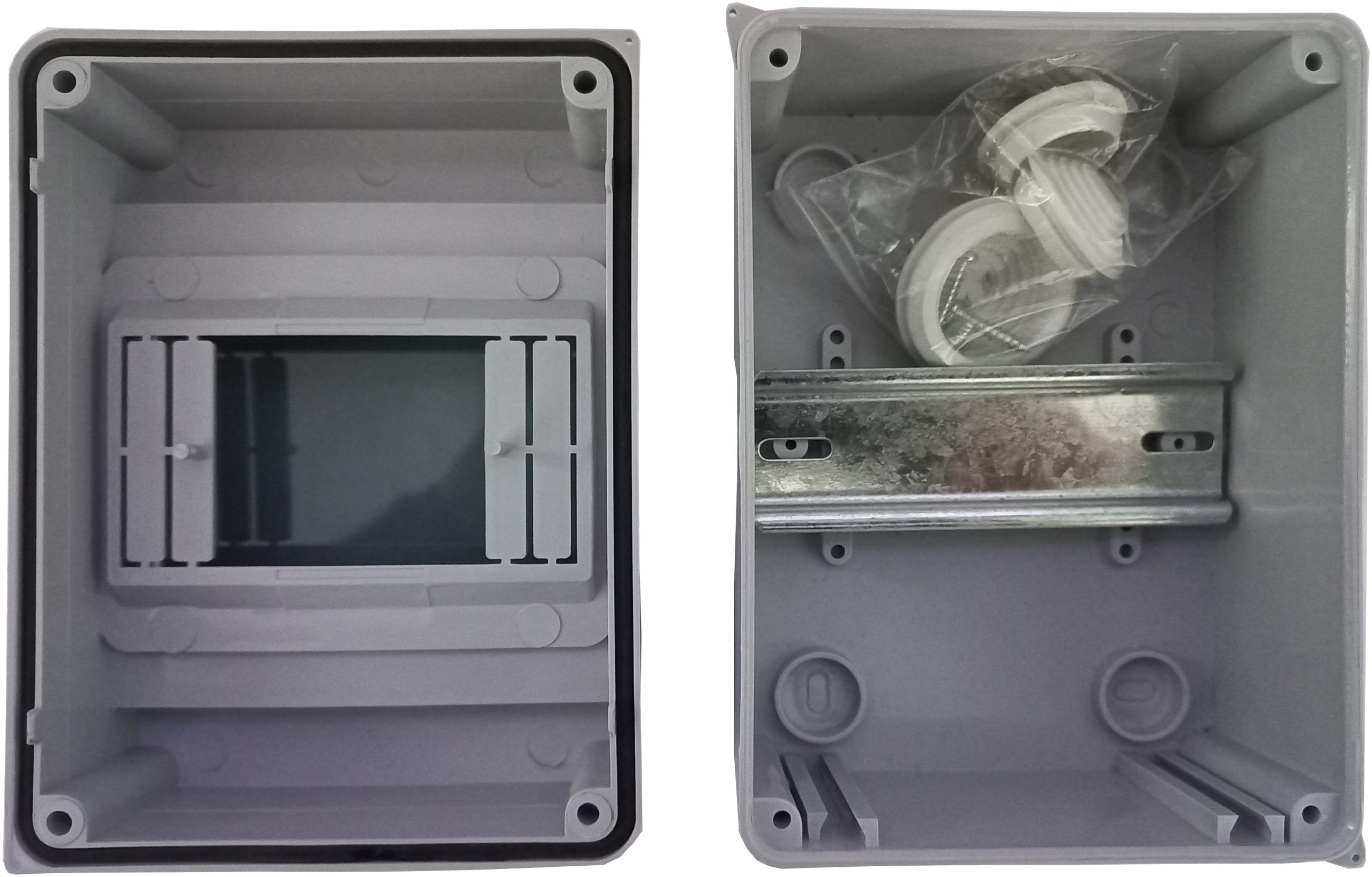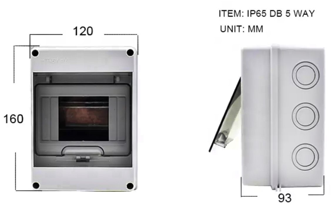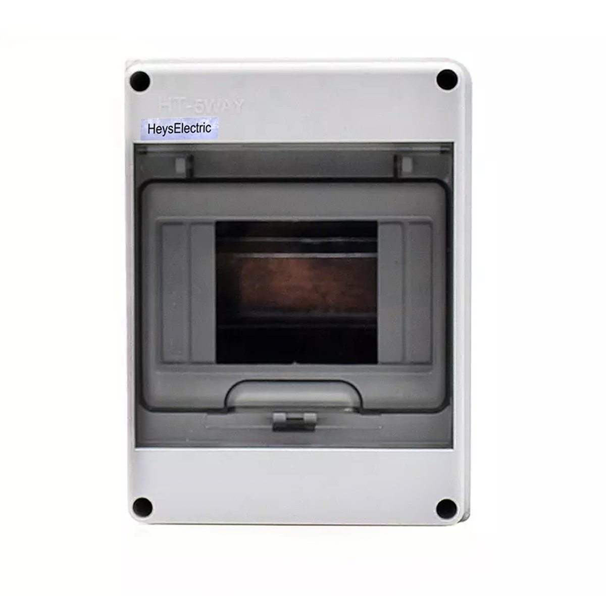 Pequeño tablero sobrepuesto para 5 automáticos. Ideal para derivaciones, protecciones individuales de aire acondicionado o bombas de piscina donde se requiere máxima protección contra el agua.