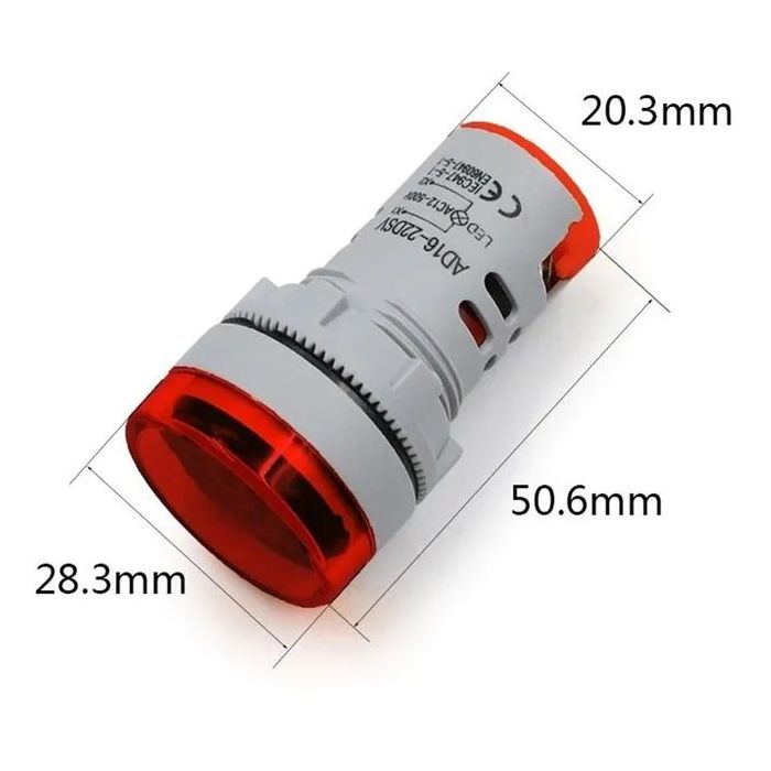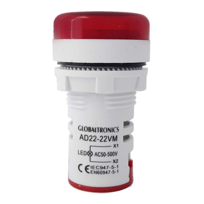 VOLTIMETRO PILOTO LED 22MM ROJA -Código:AD22-22VM -Voltaje: AC 60-500 Volt -Medida 22 mm -Color Rojo